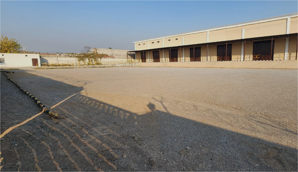 Height 30 feet, big huge hall with offices big parking space , Fully secure 4 sides walls